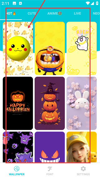 1、在壁纸页面选喜欢的样式,像皮卡丘主题这类,点进去就能查看该壁纸的详情效果啦。