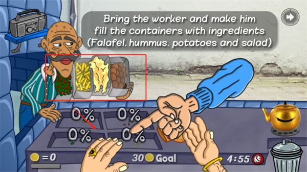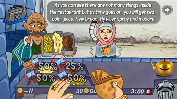 3、制作美食:从购买食材到制作美味的三明治,在这里玩家能够制作属于阿拉伯口味专属三明治,给他们更好的体验。