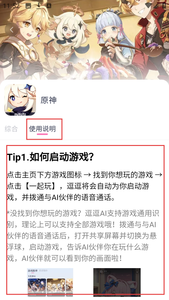4、切换到《原神》的使用说明板块,能看到启动游戏等相关操作指引,助力我们顺利开启游戏。