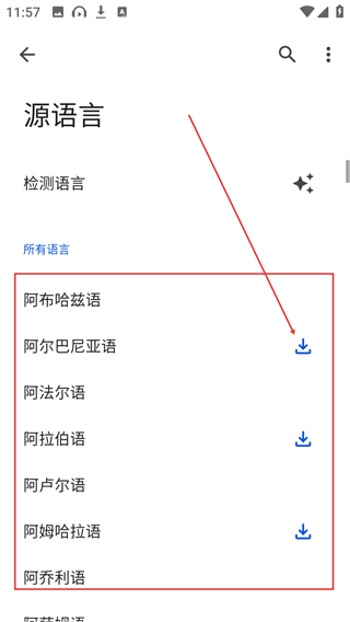 4、下载完成后【阿尔巴尼亚语】会显示勾选状态,成功将其设为翻译的源语言类型哦。