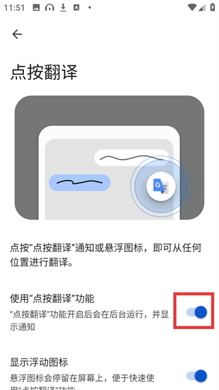 3、在设置页点击【点按翻译】选项,就能进入该功能的详细配置页面,调整功能的开关状态啦。