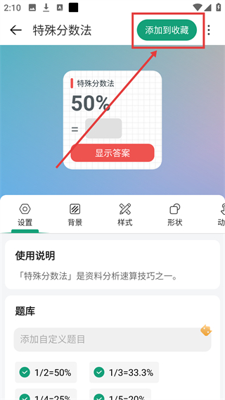 4、进入【收藏】界面,能看到已收藏的【特殊分数法】组件,点击【安装】即可添加到桌面哦。