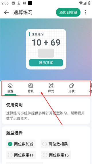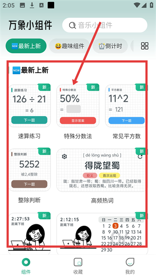 1、在万象小组件的组件页面,选择【速算练习】组件,可进入该组件的详情界面,准备进行个性化设置啦。