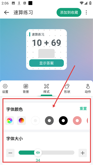 4、切换到【样式】设置界面,可调整字体颜色与字体大小,让速算练习组件的显示效果更贴合喜好哦。