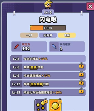 1、在闪电啾没有6级前先随便玩一玩,当闪电啾6级后会解锁金蛋技能,攻击时会获得10个幻晶球,幻晶球可以用来召唤精灵,可以说是前期阵容必备精灵,既可以输出又可以打钱发育。