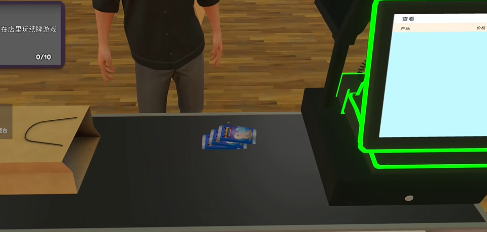 3、客人在选择要购买的卡包后会前往收银台,玩家需要主动为客人进行结账;