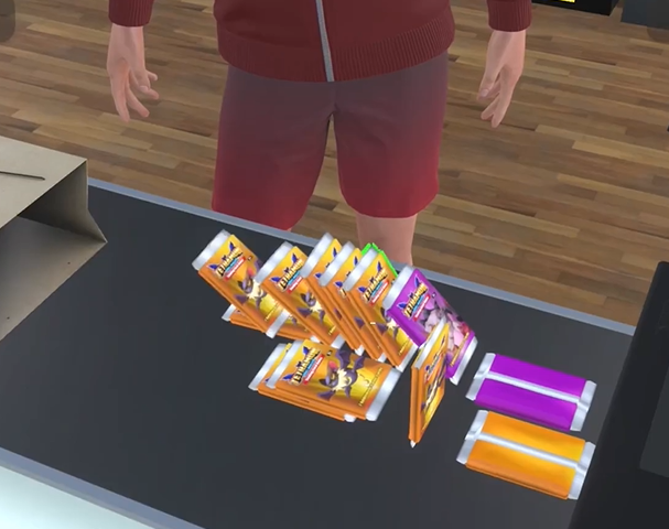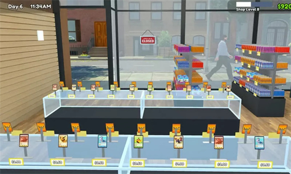 1、游戏以第一人称视角的形式表现,玩家需要化身卡店老板,为自己的店铺添置不同的卡包货物;