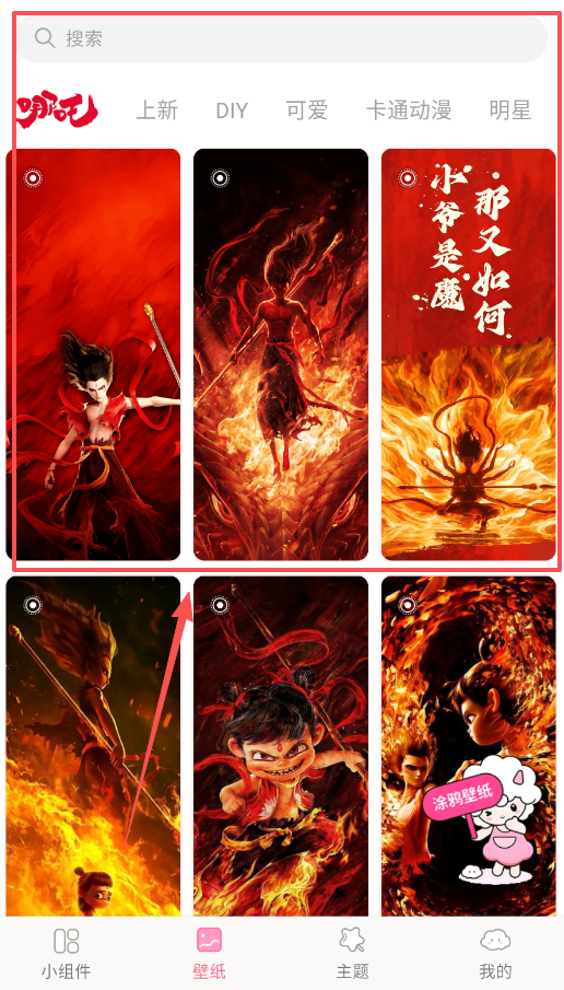 3、如果你特别喜欢某个作品,比如火影忍者或原神,可以在主题区直接搜索相关名字。