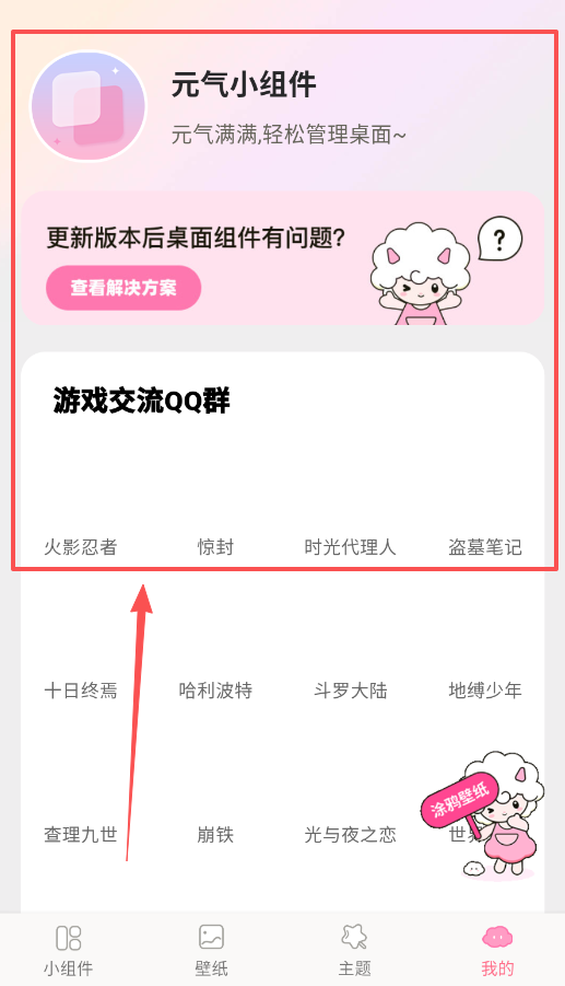 4、遇到问题不用慌,如果在主页看到“更新版本后桌面组件有问题”的提示,直接点进去查看解决方案就好。