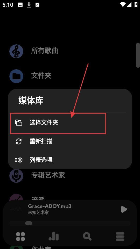 2、打开操作菜单后,我们点击【选择文件夹】,就能进入文件夹选择页面,准备选择要访问的文件夹。