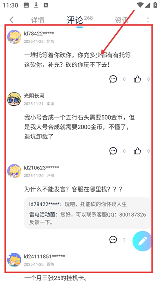3、切换到【评论】标签页,能查看其他用户的游戏体验,帮助自己了解游戏情况呢。