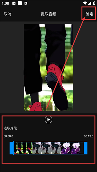 3、在提取音频页面,可通过选取片段功能框选视频区域,确认后点击右上角【确定】开始提取音频呀。