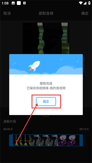 4、音频提取完成后,会弹出提取成功的提示框,点击【确定】就能完成流程,音频会保存到指定位置哦。