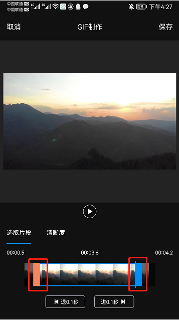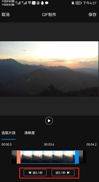 可以点击下方的按键进行【退0.1秒】或【进0.1秒】的精细操作
