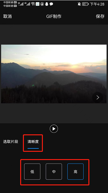 4.选择清晰度,可以选择【低】、【中】、【高】