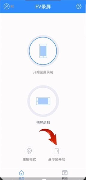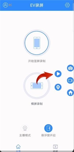 1、首先打开【EV录屏】软件,完成授权操作并开启悬浮窗权限,然后可以选择横屏还是竖屏录制。