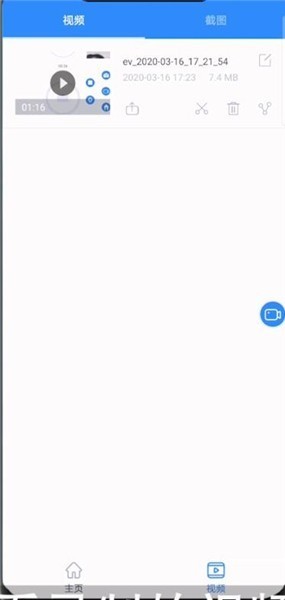 7、录制完成后点击最下面的【视频】,即可查看录制的视频及截图,也可以进行剪辑、导出、重命名、分享、删除视频。
