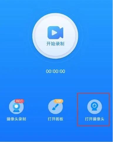 1、打开ev录屏,在录屏界面点击打开摄像头。