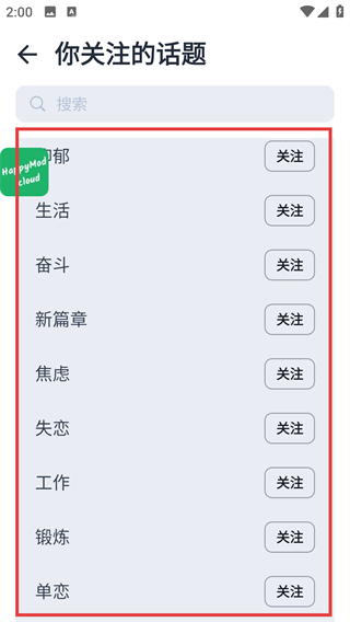 3、在【你关注的话题】列表里能看到多个话题选项,每个话题右侧都有对应的【关注】按钮可操作哦。