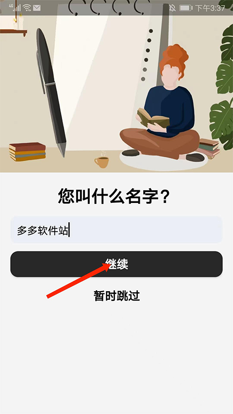 1、打开Motivation,输入自己的昵称后选择【继续】选项,也可以选择暂时跳过,