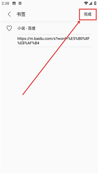 3、添加书签后进入书签页面,点右上角的【完成】按钮,就能保存这次的书签添加操作啦。