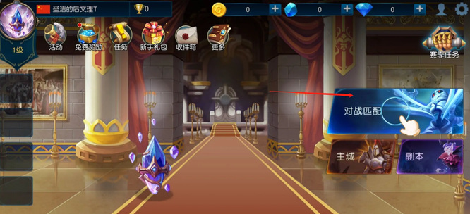 1、玩家首先点击主界面右侧的对战匹配进入。