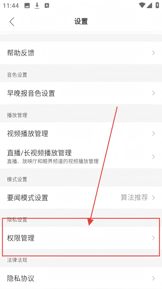 2、进入设置后,找到【权限管理】,点击进入可管理应用权限,让权限使用更规范哟。