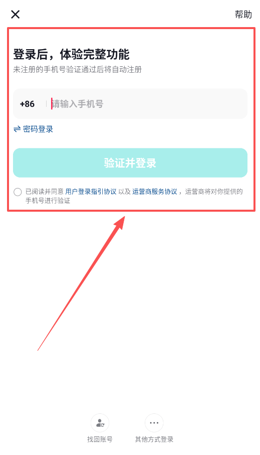 1、打开应用首先进行账号注册,在登录页面输入手机号后点击验证并登录,流程设计得很人性化。
