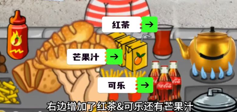3. 增添了新的饮料:红茶、芒果汁和可乐;满足顾客的不同需求
