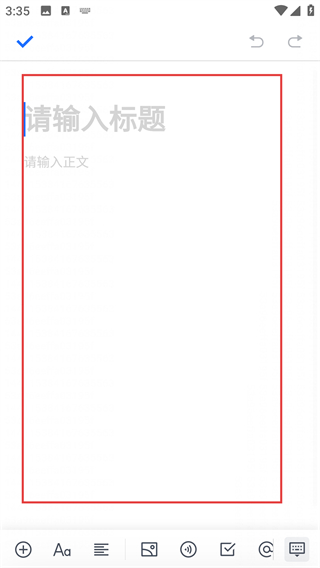 4、进入空白文档编辑页后,可在【请输入标题】和正文区域填写内容,开始编辑文档内容哦。