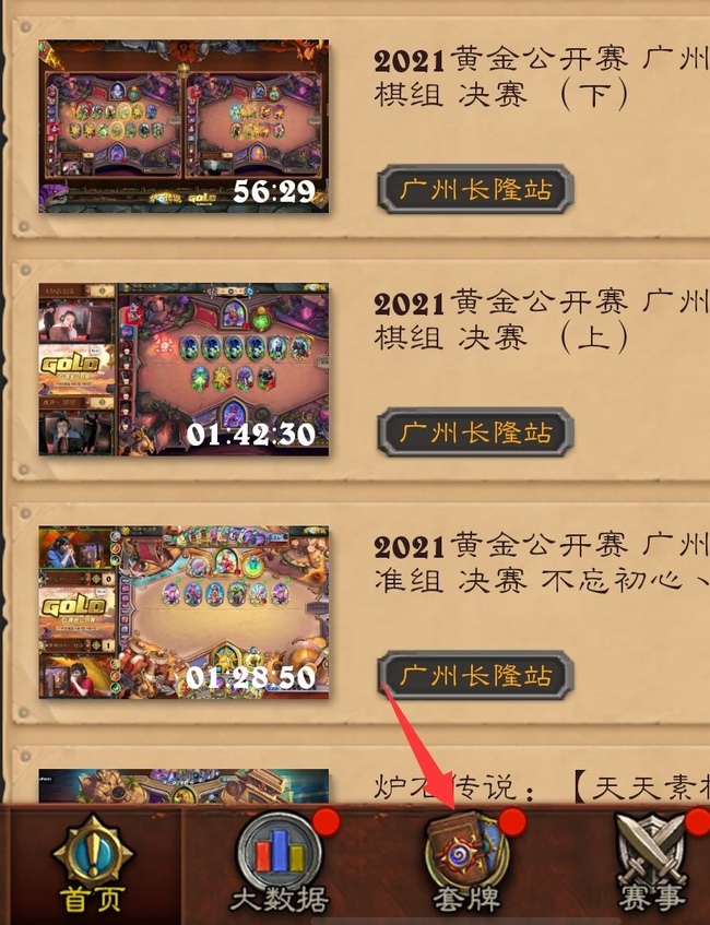 1、打开随身炉石传说软件,点击下方套牌,然后选择自己心仪的套牌;