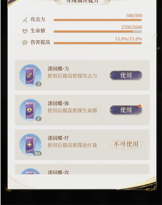 11、漆园蝶,攻击和生命获取几率不大,优先给主力队伍用,别随便乱用;
