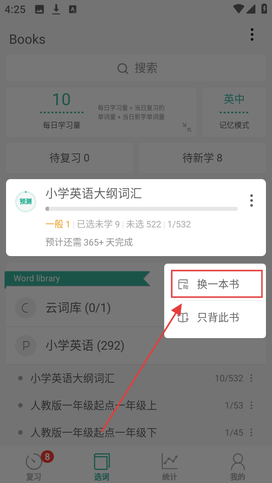 墨墨背单词怎样换书