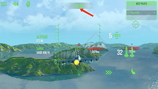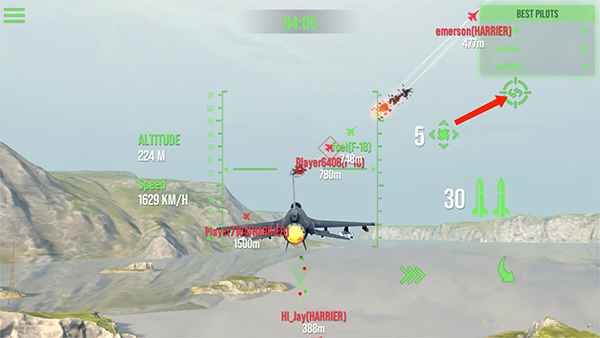 6、锁定目标后,点击【导弹】图标,即可发射导弹炸毁敌机,