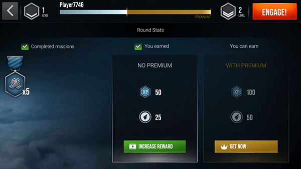 8、游戏结束后可获得金币、钻石、经验等奖励,可用于购买和升级战机,以上就是Modern Warplanes游戏的玩法了。