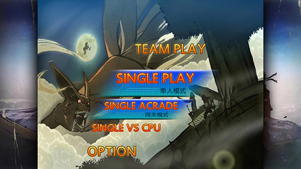 1、打开火影忍者究极风暴,进入游戏主界面,包括【TEAM PLAY】联机模式、【SINGLE PALY】单人模式、【SINGLE ACRADE】闯关模式和【SINGLE VS CPU】人机对战模式,玩家可自行选择,这里以【单人模式】为例,