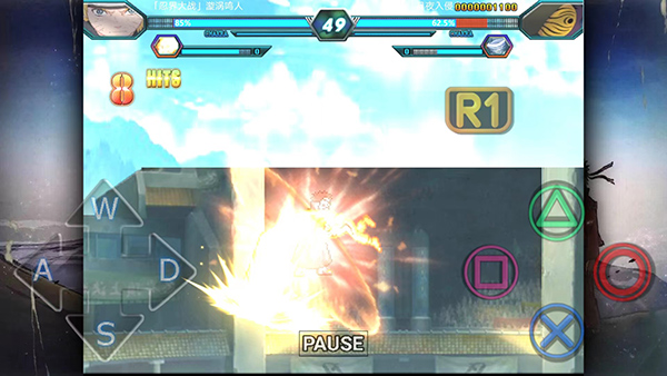 4、进入游戏对局,左方为W上,S下,A左,D右,方向键区域,右边正方形为普通攻击键,三角形为技能键,圆形为瞬移键,X为跳跃键,玩家在对局中需要巧妙地使用不同的键位来击败对手,