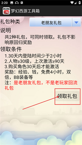 梦幻西游工具箱怎么领取礼包