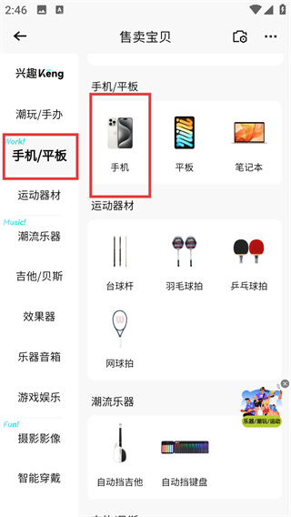 3、在售卖宝贝页选【手机/平板】分类,再点【手机】选项,就能进入对应的售卖模式选择界面啦。