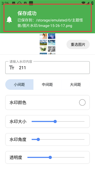 4、完成水印参数设置后保存,会收到【保存成功】提示,文件会存到指定路径,这样就完成图片水印制作啦。