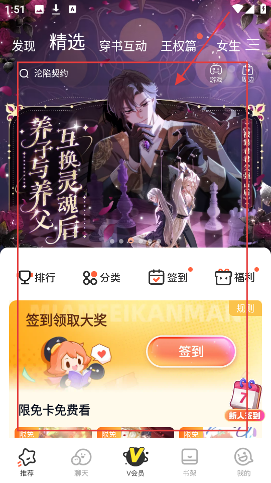 每天登录会赠送给漫迷会员,享受专属的会员权限福利,这样我们就可以看到各种我们想看的v会员漫画作品。