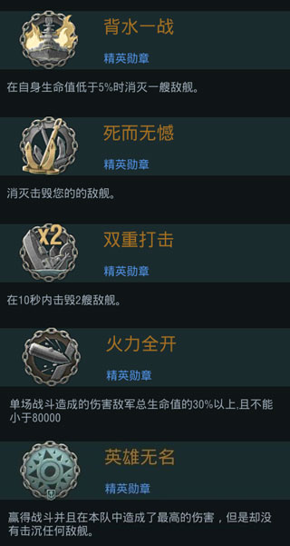 难度最大的应该是史诗勋章了,每一个勋章的达成条件都比较难实现,特别是【闪电突袭】,要连续击毁3艘敌舰,间隔还不能超过5秒……