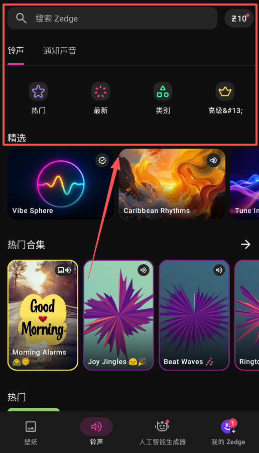 Zedge中文版中只要你点击壁纸和铃声的类别,你就可以看到很多铃声和壁纸。