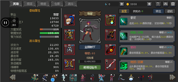 1、角色升级:升级游戏中的角色,武装升级伤害,更快的毁灭游戏中的敌人,在这里可以控制英雄与敌人作战。