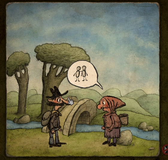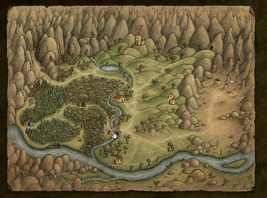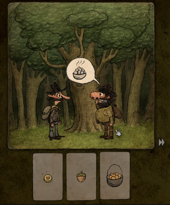 3、把马铃薯给强盗吃之后,他会放你过路,游戏此时解锁全地图。在吃饱之后,强盗还想喝酒,咱们得去帮他弄来酒。