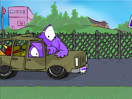 1、在狂扁小朋友官方版本游戏的开始,便是大力士开着车带儿子来幼儿园;
