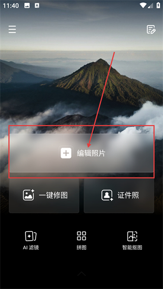 1、在主界面点【编辑照片】按钮,能进入图片编辑页面,后续可对照片进行裁剪、调色等操作啦。