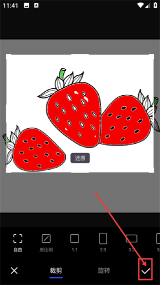 3、在裁剪界面选合适的比例,调整好照片范围后,点右下角对勾按钮,就能确认裁剪效果啦。