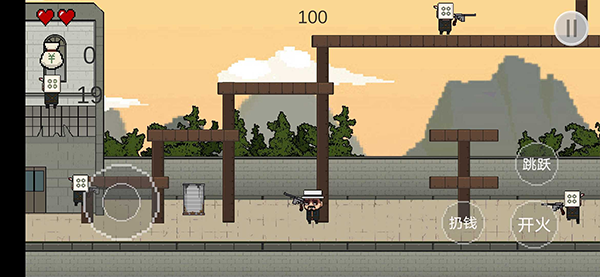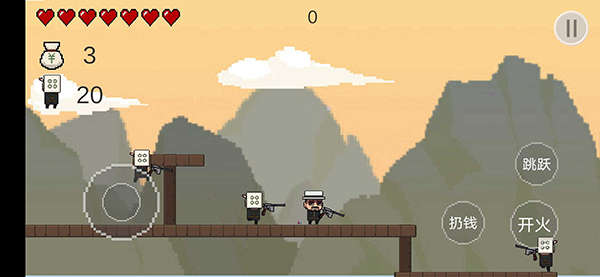 1、玩家可以选择扔钱,或者是开火,这个看情况来决定,爽快的攻击看看,你的操作都在这里,一路上的敌人可不少的哦。