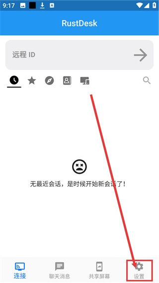 1、在【RustDesk】主界面点击底部的【设置】按钮,就能进入设置页面,配置软件相关功能啦。